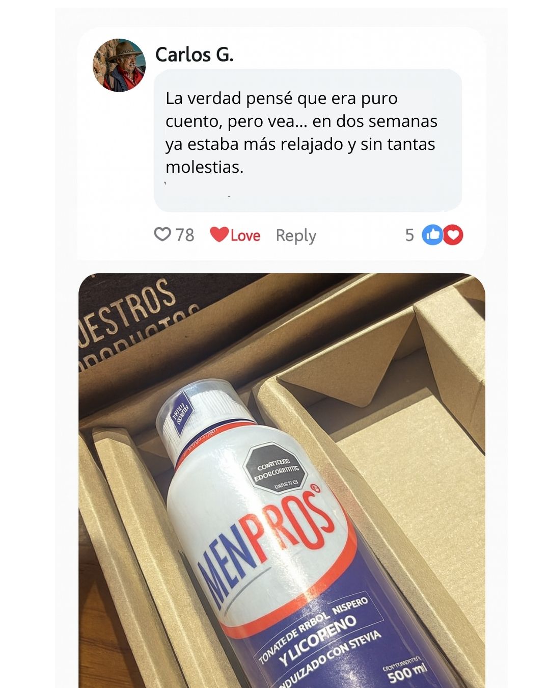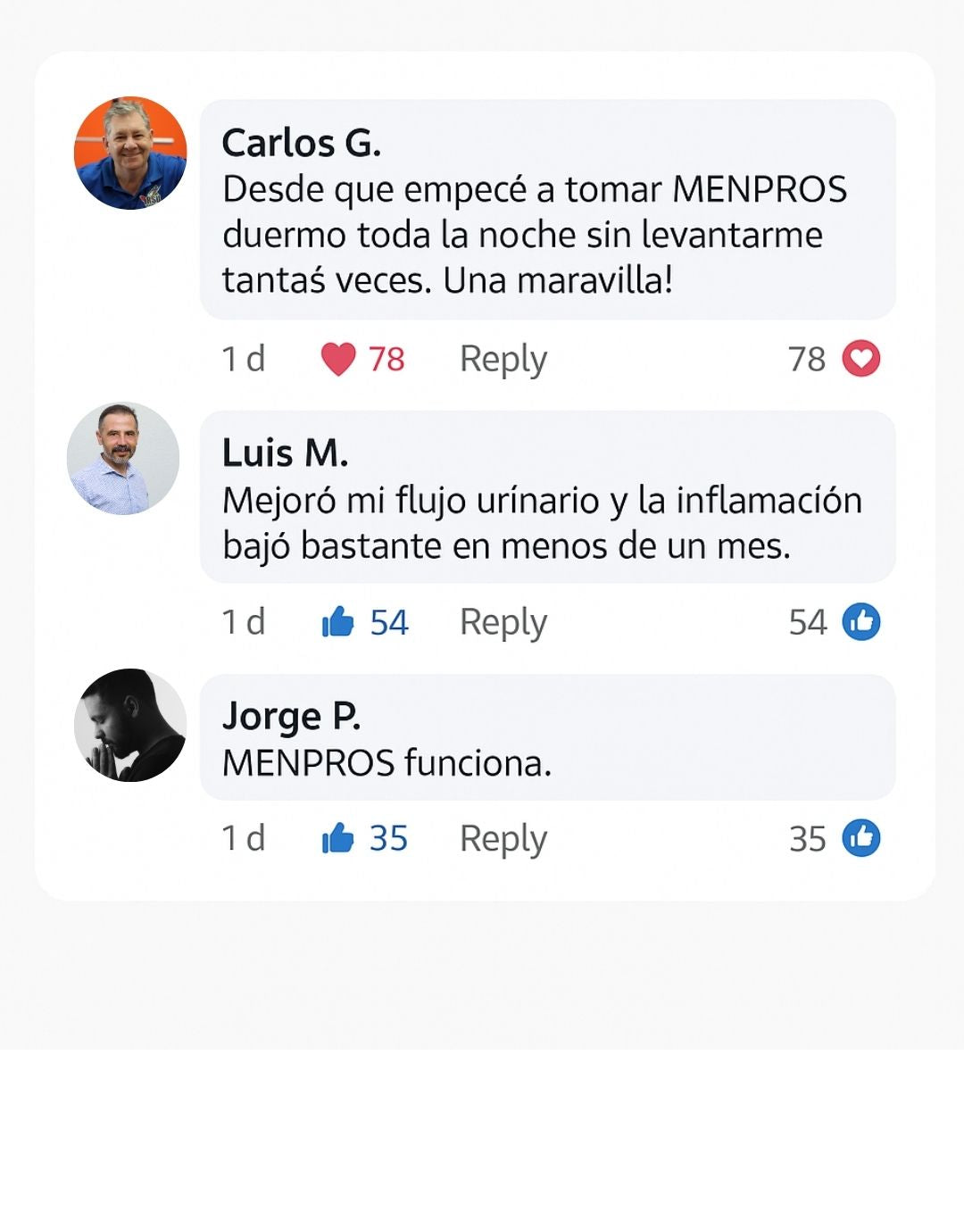 MENPROS ayuda a reducir la inflamación, mejora el flujo urinario y mantiene tu salud masculina todos los días.